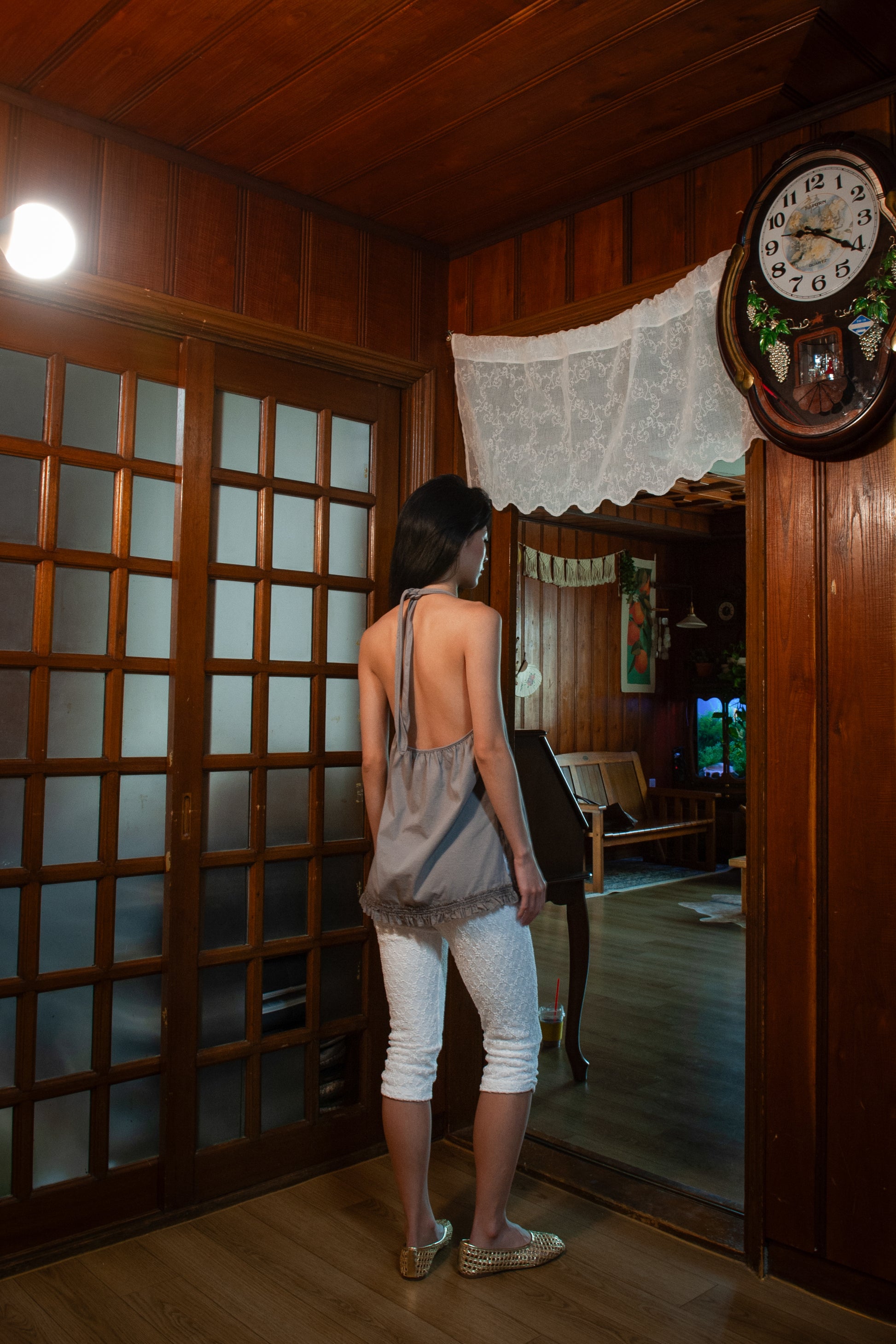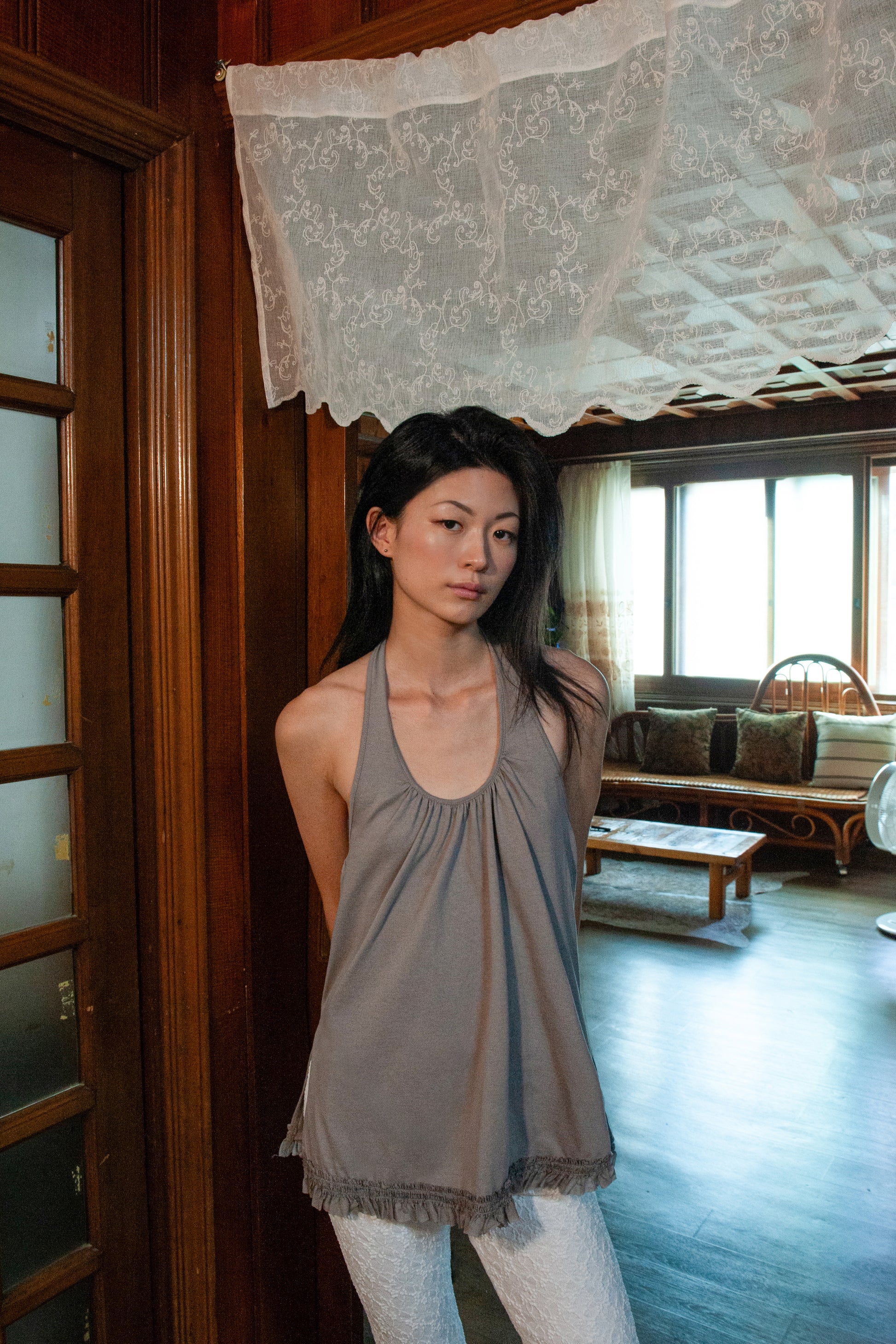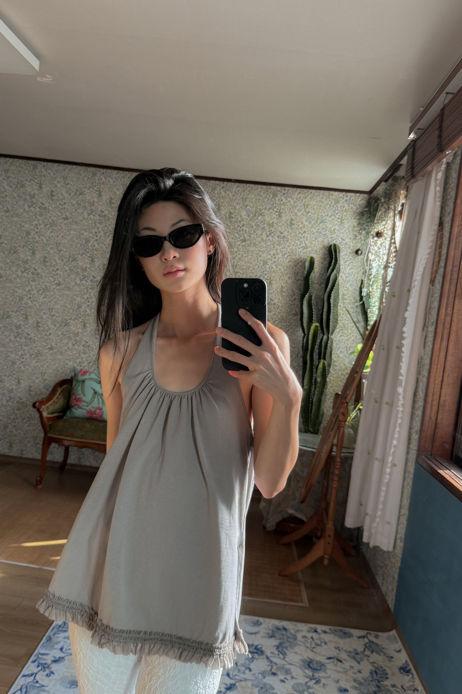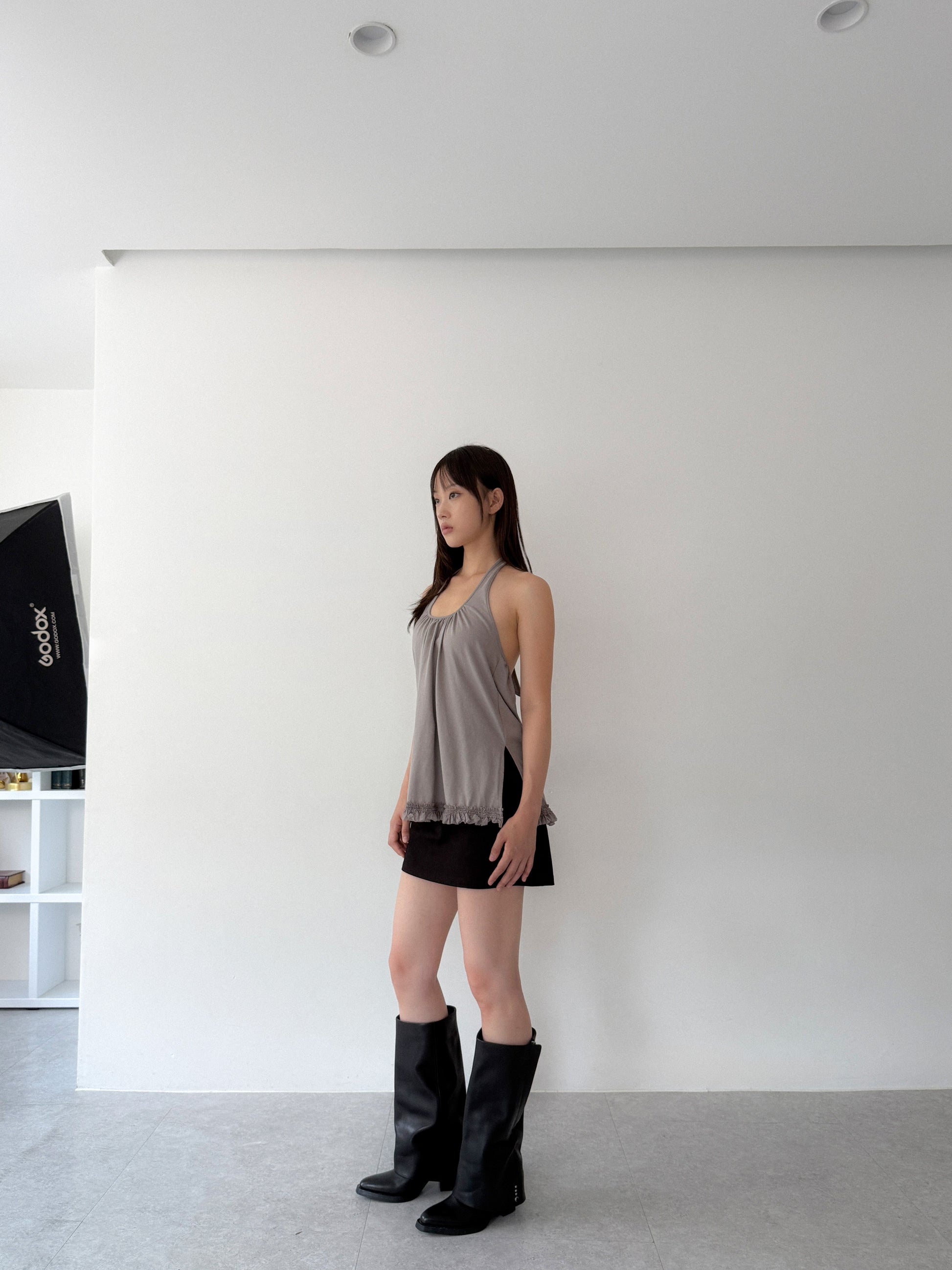 Ruffle Lace Halter Top | Grey