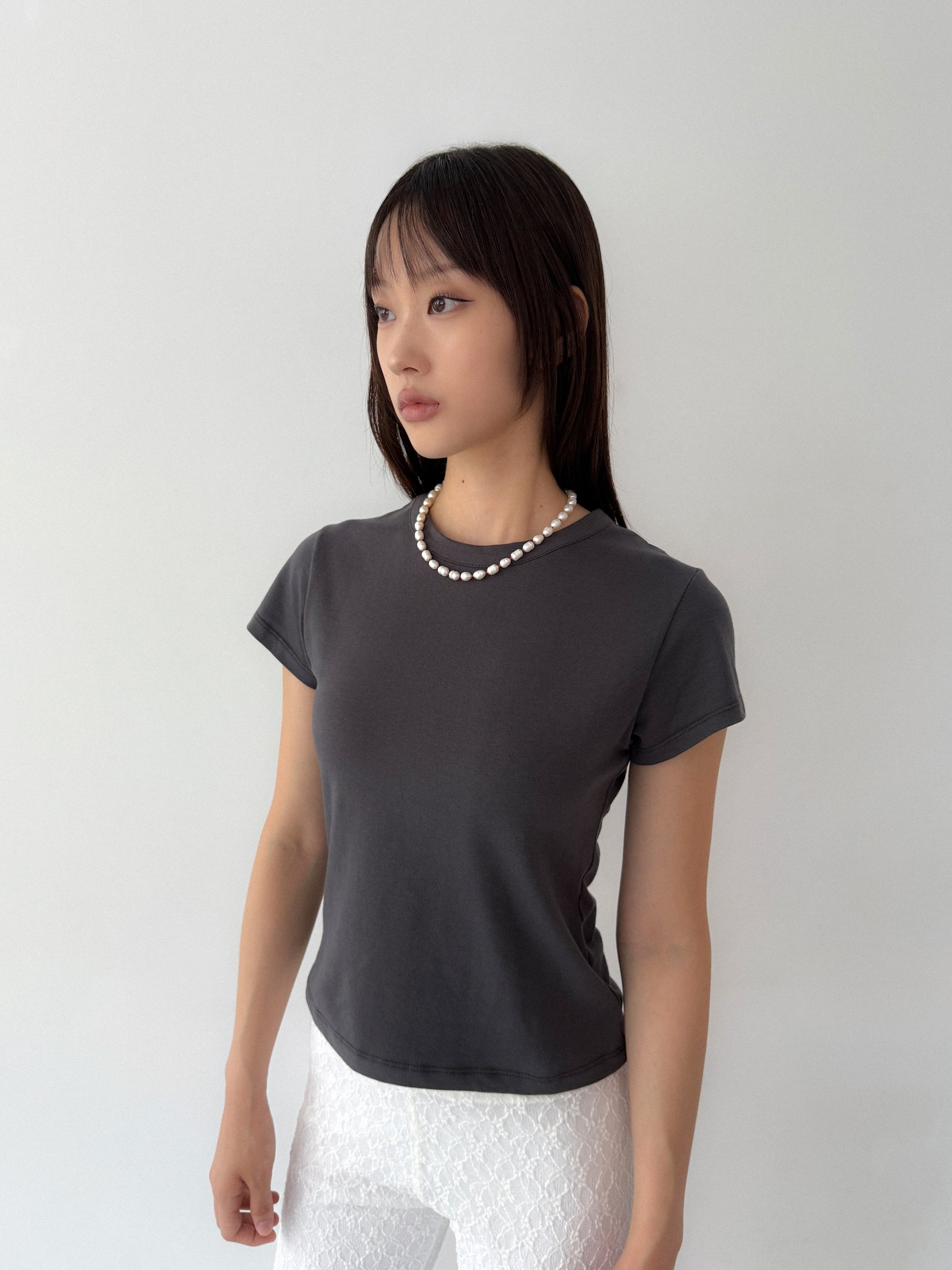 Freshwater pearl, acrylic, surgical stainless steel.